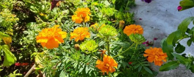 گونه های بلند، به عنوان مثال، Tagetes erecta، بهتر است در اطراف محیط سایت برای ایجاد یک مانع محافظ کاشته شوند. این گل بی تکلفی شگفت انگیز را نشان می دهد، تقریباً در هر خاکی جوانه می زند و نیازی به مراقبت خاصی ندارد.