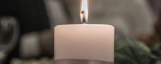 شمع سوخته ای که از آن فقط یک فتیله سوخته در گودال موم یخ زده باقی مانده است، به نظر می رسد منابع خود را کاملاً تمام کرده است.